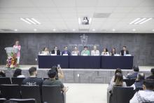 Durante su mensaje de bienvenida, la ingeniera Carmen Alejandra Miramontes Sánchez, jefa del Departamento de Ingeniería Biomédica del Nuevo Hospital Civil de Guadalajara, destacó que el trabajo de las y los ingenieros biomédicos, aunque en muchas ocasiones silencioso e invisible, es indispensable para que los equipos médicos funcionen correctamente y brinden atención de calidad a los pacientes.
